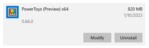 WAS, VCRedist, .NET | 149 MB | 705 MB | 1,760 MB | 557 MB | 0 MB | 706 MB | ## Our process to verify current install footprint We created a quick virtual machine. We chose to use our fresh Windows 10 test virtual machines here. ### Empty disk details ### Install PowerToys to empty disk ### PowerToys installation directory size shown by File Explorer As mentioned above, File Explorer shows size of PowerToys installation dir as every hard-link is a regular file for itself ### PowerToys size shown by App->Installed apps ### Disk usage with PowerToys installed Real disk usage of PowerToys is shown by inspecting disk usage after installing PowerToys. Used space is now 695MB, comparing to ~35MB used space for empty disk gives us the size of ~660MB for PowerToys installation dir. ### PowerShell command calculating size of non-hardlinks files Size of regular files (non-hard-links) and hard-links can also be obtained by running following PowerShell command in PowerToys installation dir: ``` Regular files: ls -Recurse -File -force -ErrorAction SilentlyContinue | ? LinkType -ne HardLink | Measure-Object -Property Length -Sum Hard-links ls -Recurse -File -force -ErrorAction SilentlyContinue | ? LinkType -e HardLink | Measure-Object -Property Length -Sum ``` Running these commands for PowerToys v0.66 shows that size of regular files is way less than size of hard-links pointing to some of those regular files because PowerShell (same as File Explorer) also takes the size of hard-links as of regular files.