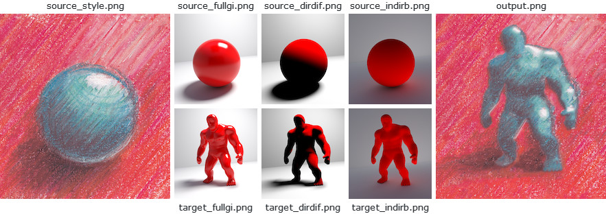 ebsynth -style <style.png> -guide <source.png> <target.png> -output <output.png>